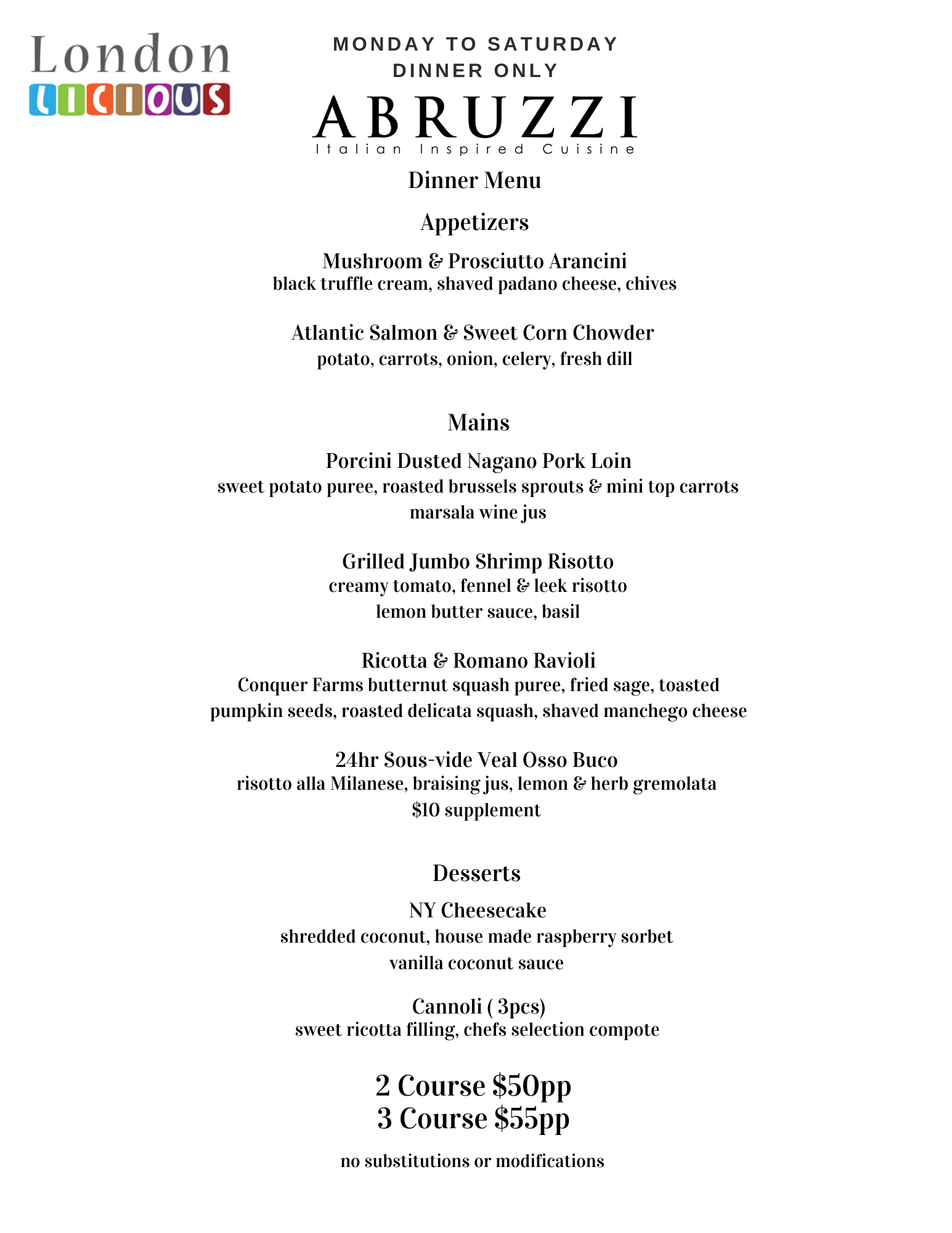 Please Note: LONDONLICIOUS WILL NOT BE AVAILABLE ON EVENT NIGHTS